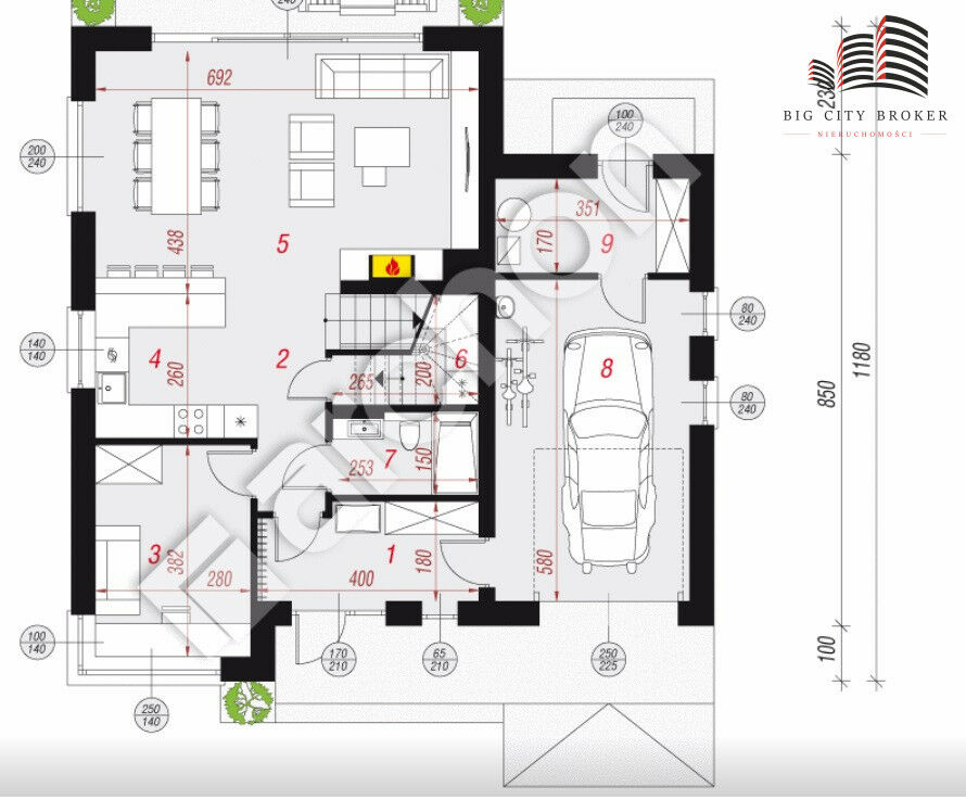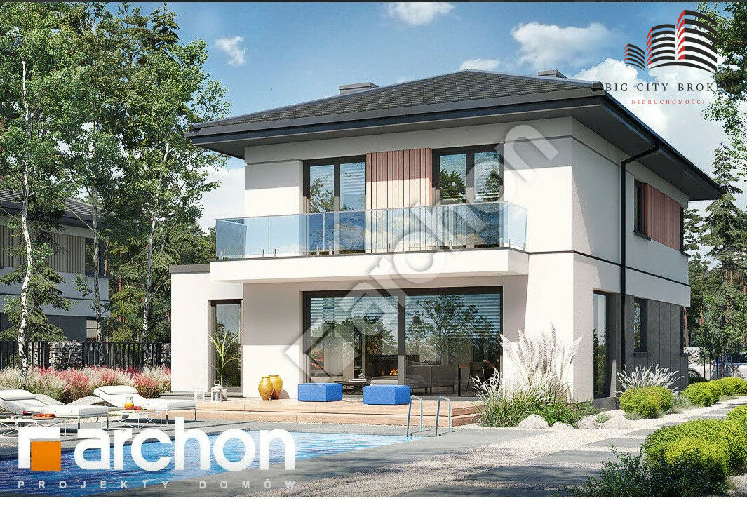 - prawomocnym pozwoleniem na budowę domu jednorodzinnego piętrowego na podstawie projektu Willa Julia 16g (Archon) oraz wolnostojącym garażem o powierzchni 35 m2
